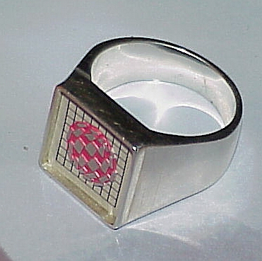 Or you could go with this custom sterling silver Boing Ball Ring, which incorporates an actual aluminum mouse logo plate from the original Amiga computer: